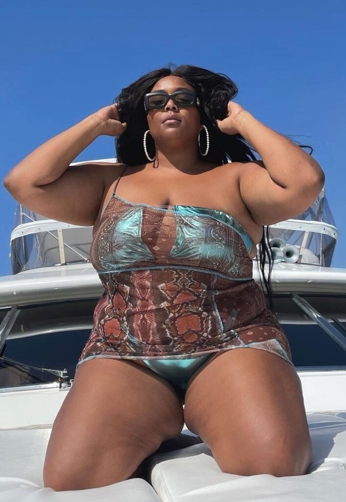 Známá rapperka je na své křivky pyšná a tak je pravidelně servíruje svým fanouškům na sociálních sítích. Nestydí se ukázat nahá, na párty chodí v upnutých minišatech, ve skříni má zásobu crop topů a tak je logické, že ani u plavek se nebude držet zkrátka. V její zásobě nechybí kousky v křiklavých barvách, miniaturní bikiny ani tanga. Lizzo razí heslo: čím extravagantnější, tím lepší. V metalických dvoudílných plavkách fotila kampaň pro značku Pretty Little Things, které stylisté doplnili průsvitným přehozem s hadím motivem.
