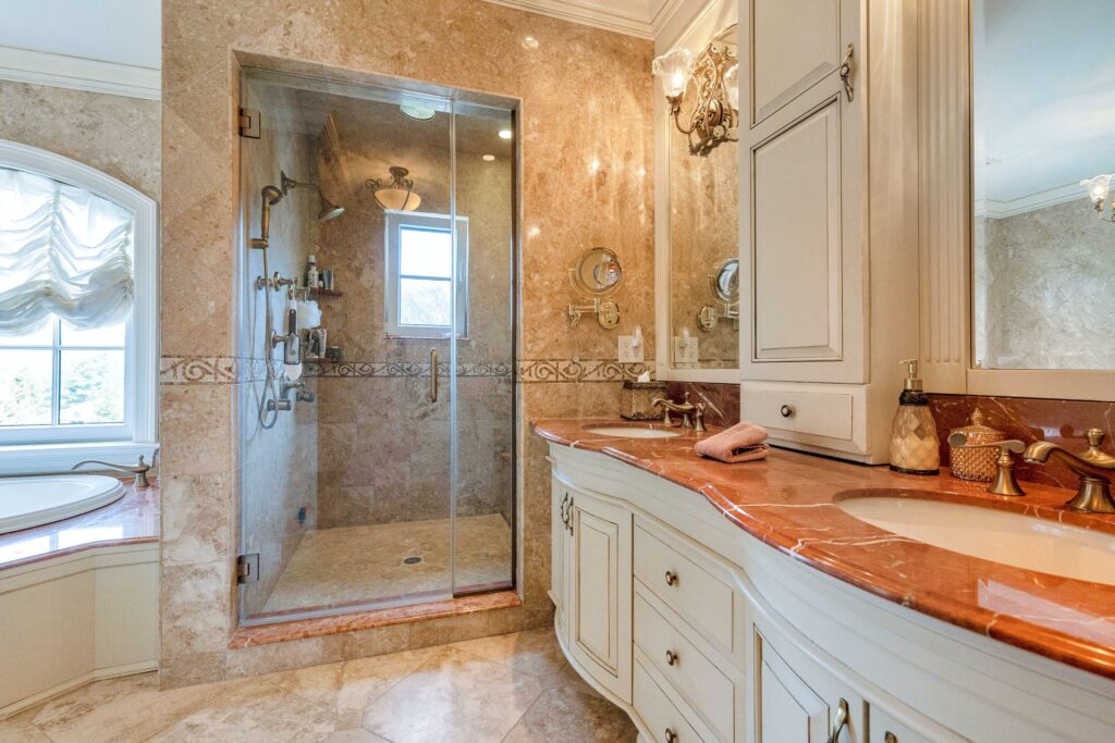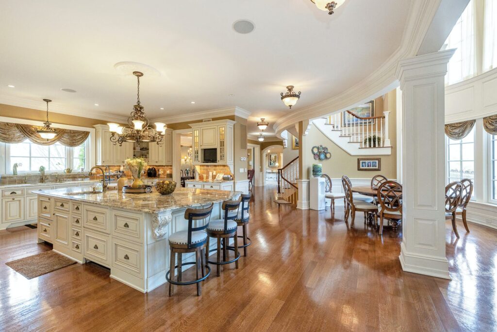 Architektonických skvostů v tomto stavení najdete hned několik. Patří mezi ně například okna, která sahají od podlahy až ke stropu, a balkony či terasy, kterými jsou vybaveny všechny hlavní pokoje a ložnice, z nichž je vidět do zahrad a na bazén. Dům je vybaven hned 6 ložnicemi a 7 koupelnami, jednou rozlehlou a druhou menší kuchyní, mahagonovým barem, pokerovou hernou, promítacím nebo divadelním sálem, posilovnou i lázněmi. Nechybí ani romantická věž, která slouží jako oválná pracovna. Dům je dokonce vybaven také výtahem. Kolem budovy se nachází krásné zahrady a park, v němž nechybí ani fontána nebo menší vodopád. Do přilehlé garáže se vejdou hned čtyři automobily.