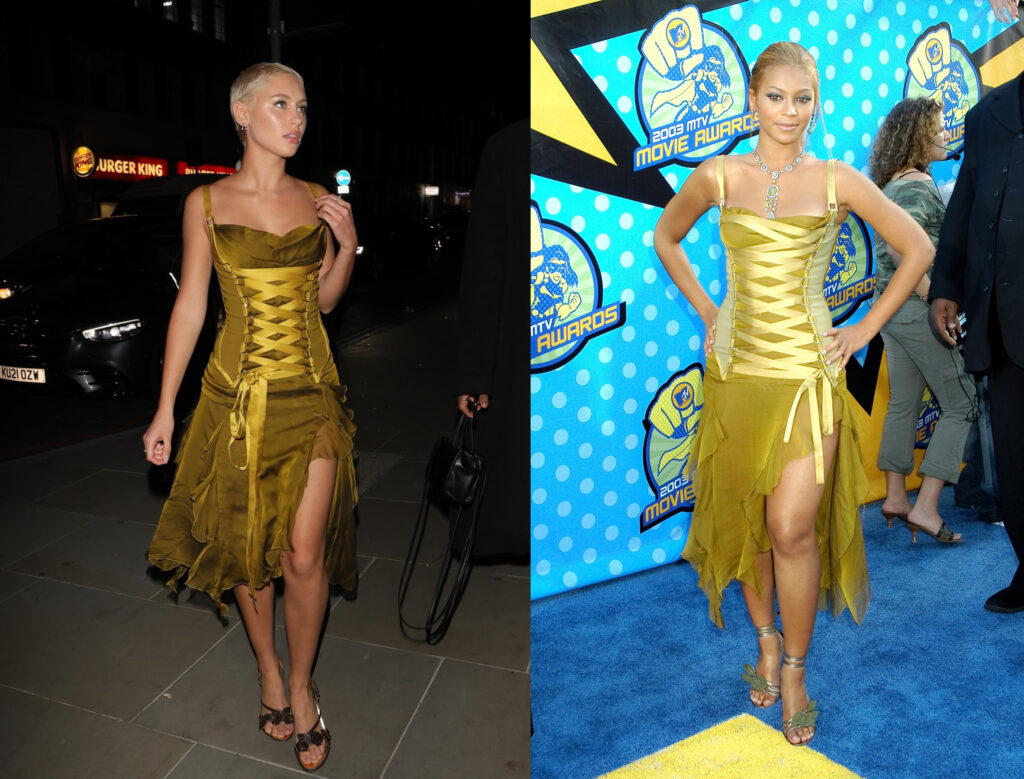 Inspiraci našla v minulosti i dcera herců Sadie Frost (57) a Jude Lawa (49). Archivní kousek značky Versace vynesla letos v rámci londýnského fashion weeku a zdaleka nebyla jediná, komu učaroval. Zelené šaty s korzetovým šněrováním proslavila už Beyoncé (40) v roce 2003. Tehdy v nich přišla na udílení hudebních cen MTV. Oblékla je dokonce i Christina Aguilera (41) a Rita Ora (31). Další nositelkou už zpěvačka nebyla. Iris Law se snaží prosadit v branži modelingu a zdá se, že našlápnuto má skvěle.
