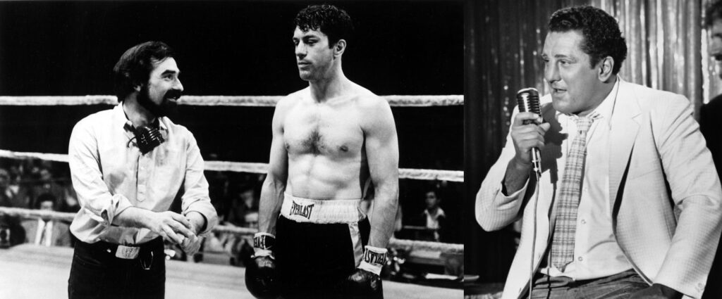 Když mluvíme o neuvěřitelných fyzických proměnách herců, je těžké hned nevzpomenout ikonický výkon Roberta De Nira v Zuřícím býkovi. Ve filmu hraje DeNiro skutečného italsko-amerického boxera střední váhy Jakea LaMottu a ukazuje nám příběh o jeho vzestupu a pádu v boxerském světě. Pro rané boxerské scény, které se pro filmy natáčely, se De Niro dostal do bojové formy. Největší pozornost ale přitáhla jeho proměna mimo ring. V posledních scénách totiž musel zobrazit staršího a obézního LaMottu. Film si tedy vzal krátkou přestávku, aby De Niro mohl přibrat zhruba 27 kilo.
