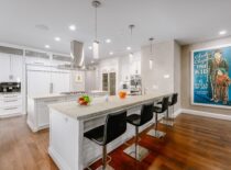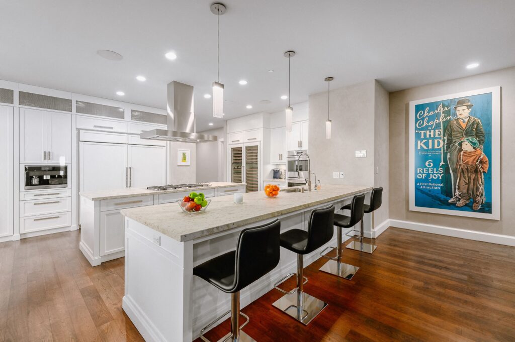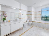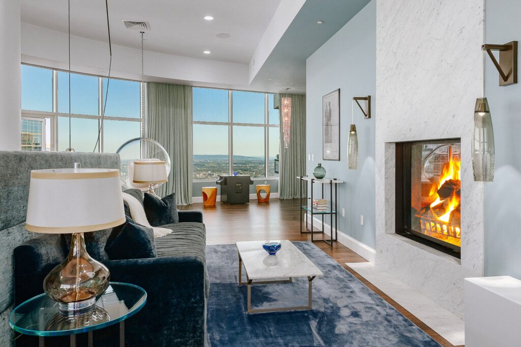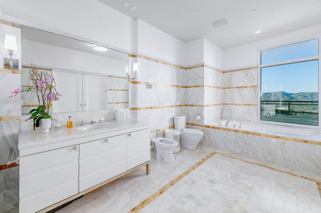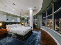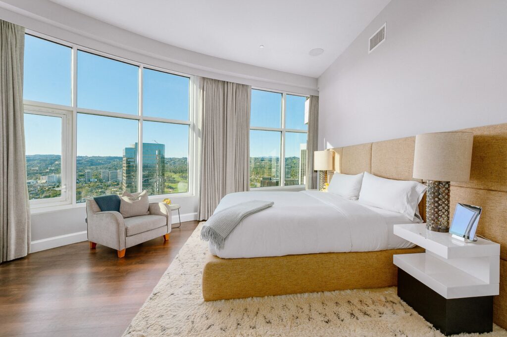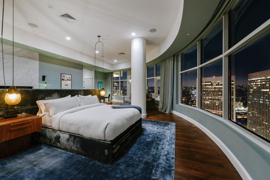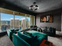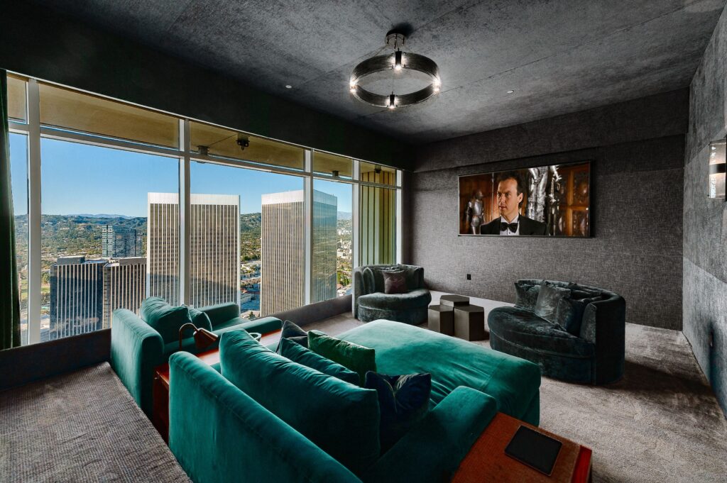 Srdcem celého bytu je jednoznačně obývací pokoj, který se chlubí moderním šedobílým barevným spektrem, dvěma krby a panoramatickým výhledem na Los Angeles. Monochromatická kuchyň je doplněna o černé snídaňové barové stoličky, které společně s bílým barovým pultíkem vytvářejí téměř šachovnicový vzor. Za snídaňovým či snad party barem se nachází samotná kuchyň a jídelna s prosklenými stěnami opět poskytující výhled na celé město. Čtyři rozlehlé terasy už jsou jenom pomyslnou třešničkou na dortu. Byt dále čítá také čtyři ložnice, z nichž ta hlavní má jednu stranu řešenou do půlkruhu, osm koupelen a domácí kinosál. K budově, v níž Rihanna vlastní už dva byty, přináleží i velká soukromá zahrada rozkládající se na ploše 16.000 m², 23 metrů dlouhý bazén, jógové studio a také vinný sklep.