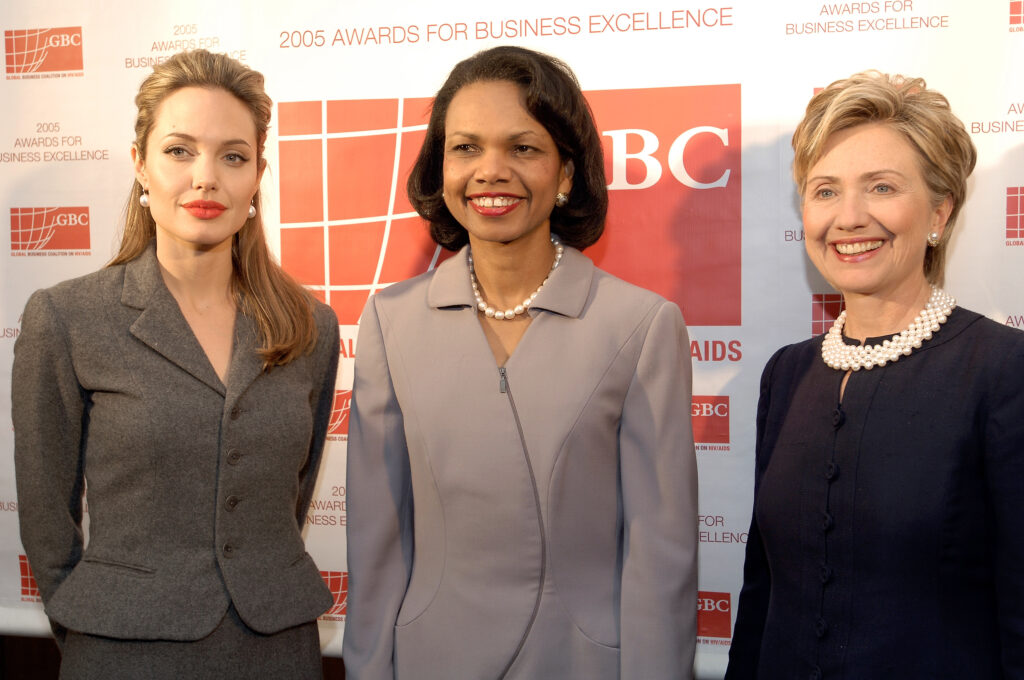 Před mnoha lety proběhl výzkum řízený Novoanglickou historickou genealogickou společností, který odhalil velmi bizarní rodinné vazby. Jen dosud není 100% jisté, jestli jde o výzkum zcela nezávislý a pravdivý. Nicméně z něj vyplynulo, že bývalá první dáma a ministryně zahraničí USA je vzdálenou sestřenicí herečky Angeliny Jolie. Údajně je příbuzensky spjata i s Madonnou a Jackem Kerouacem.
