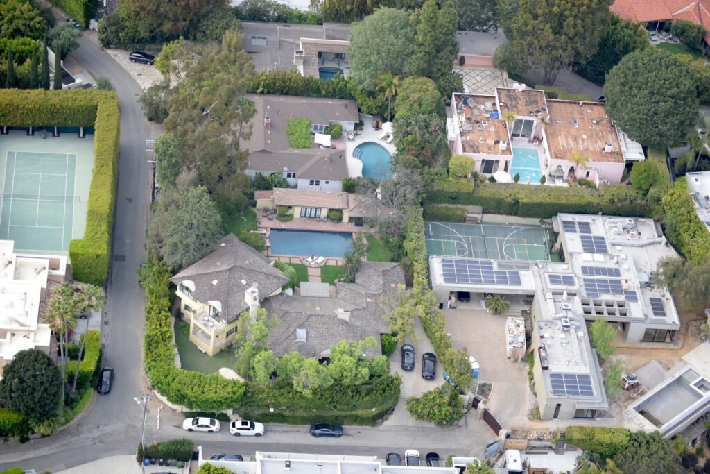 Rekonstrukce má však i bezpečnostní účel. Vzhledem k tomu, že se dům nachází v zóně s vysokým rizikem vzniku požárů, musí být vybaven nejrůznějšími ochrannými prvky. Například střechu je nutné předělat úplně celou. Vše musí vyhovovat přísným bezpečnostním předpisům. A čím se vůbec dům může pochlubit? Například 5 ložnicemi, 8 koupelnami, vinným sklípkem a lázněmi. Řeč je ale pouze jen o hlavním domě. Co se ukrývá v těch dalších, to se sice můžeme jen domnívat, ale vzhledem k tomu, že se všechny nacházejí v těsném sousedství, budou opět interiérově odpovídat obvyklému vzdušnému kalifornskému stylu a najdeme v nich, jako obvykle, několik koupelen i ložnic, a samozřejmě u žádné vily nechybí bazén.